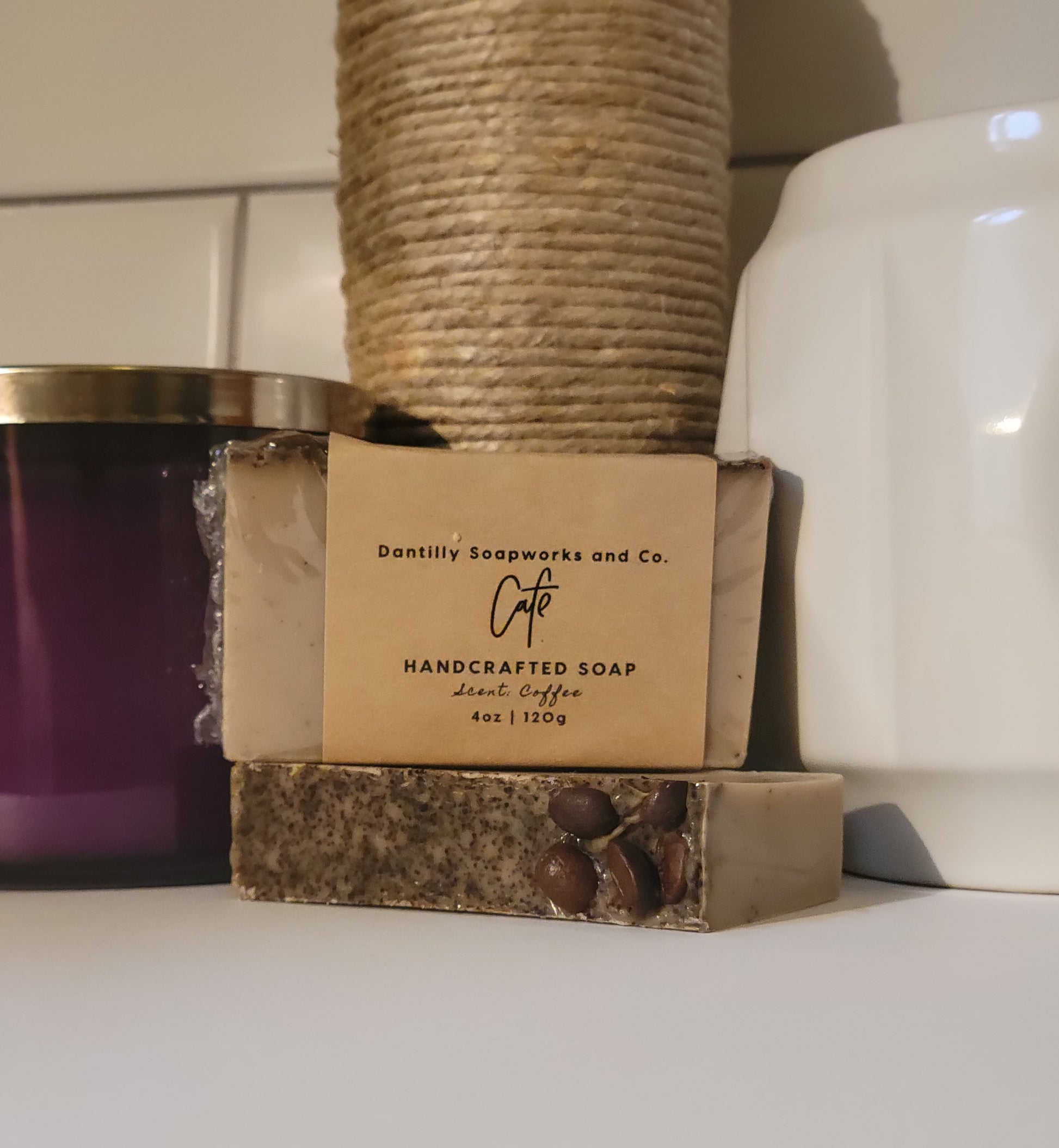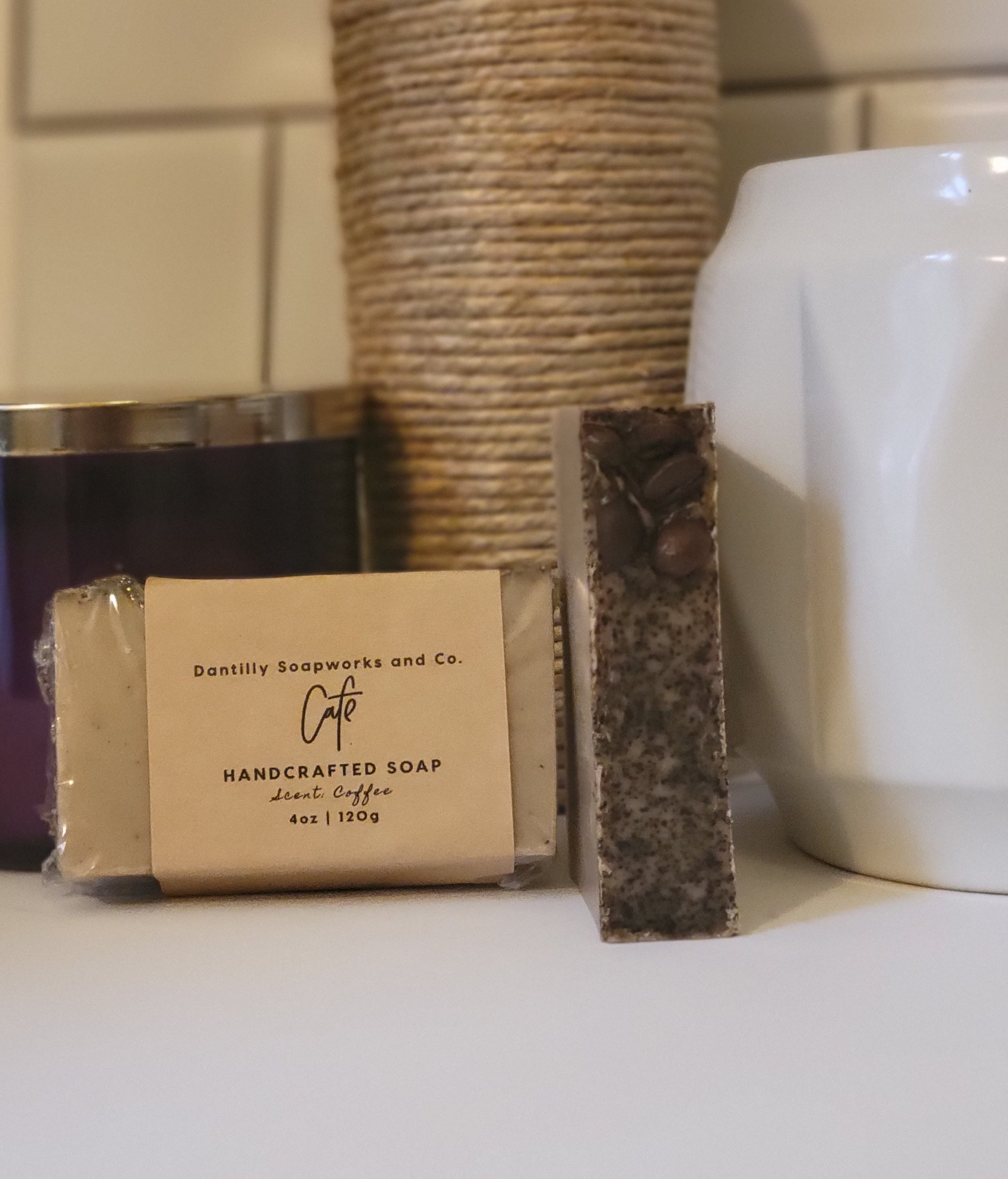 Cleanse, moisturize, and scrub your skin with our captivating bar soap. This freshly brewed scented bar will definitely have you salivating for your morning coffee. Scented with coffee fragrance and designed to include ground and whole African coffee beans, it's ingredients are known to be loaded with antioxidants that your skin will crave.
